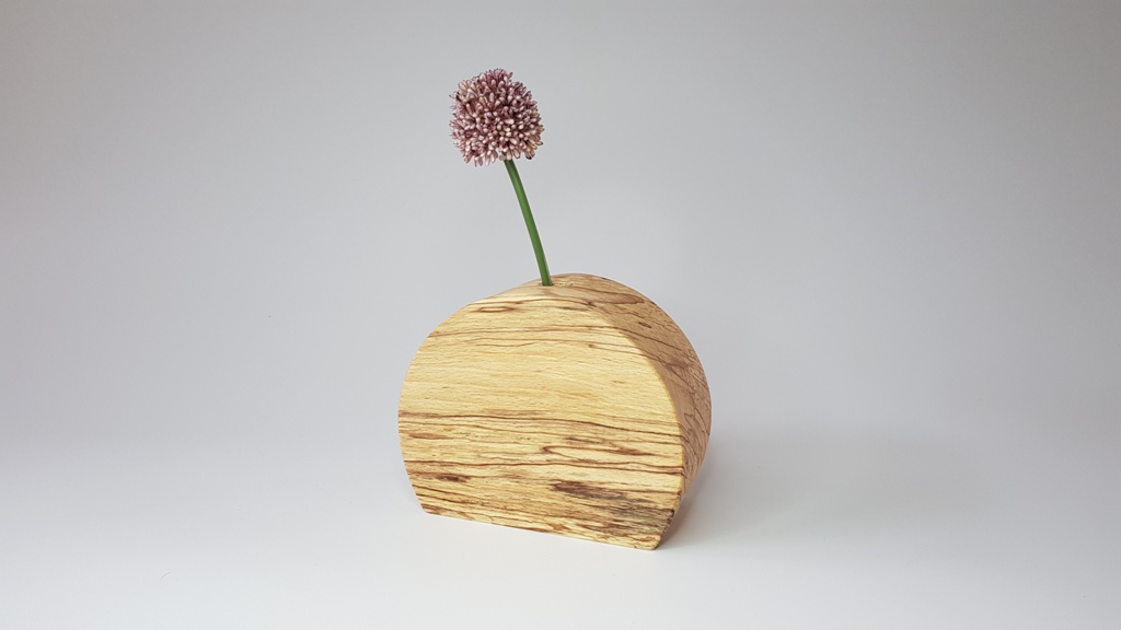 Eine Vase aus gestocktem Buchenholz.