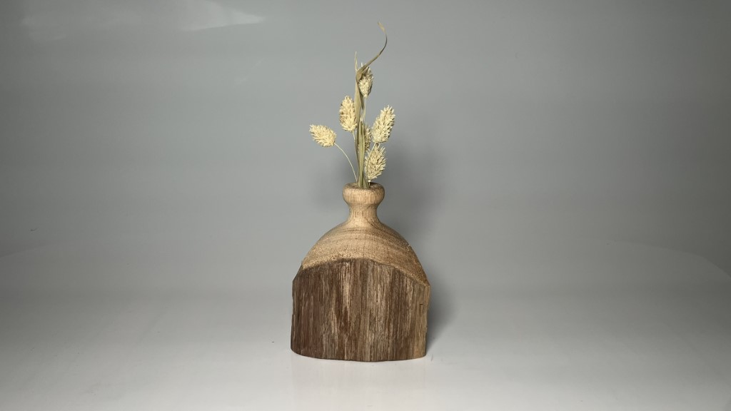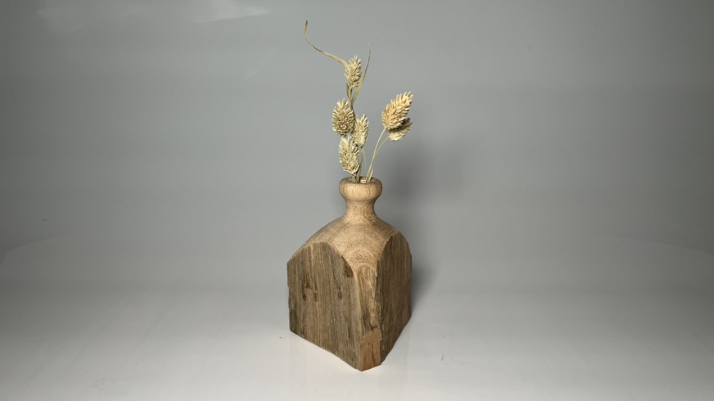 Zaunpfahlvase aus Eichenholz, mit Reagenzglas. Ohne Deko.
