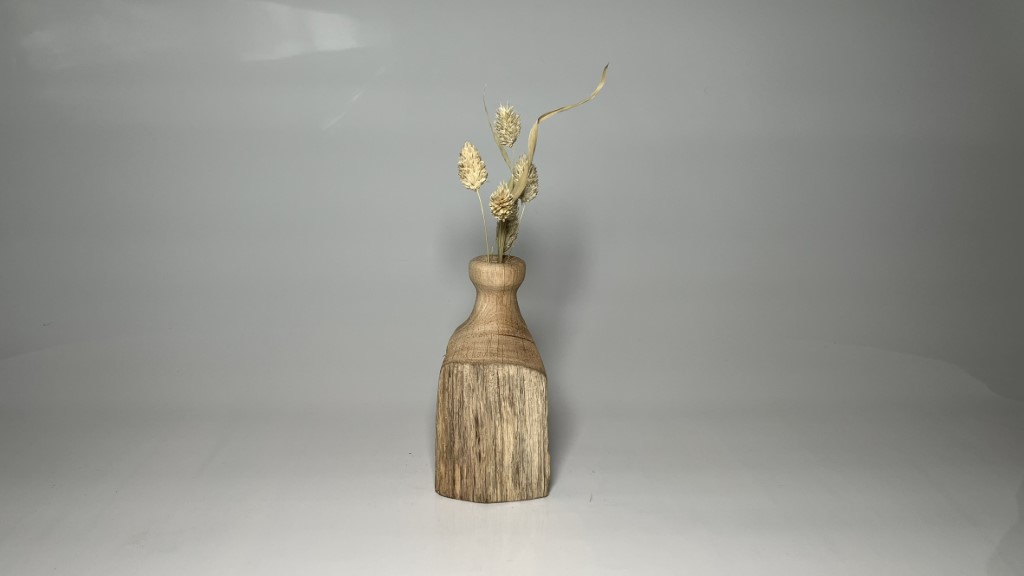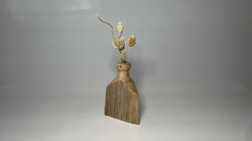 Zaunpfahlvase aus Eichenholz, mit Reagenzglas. Ohne Deko.